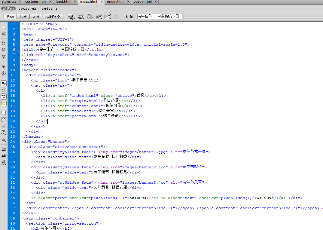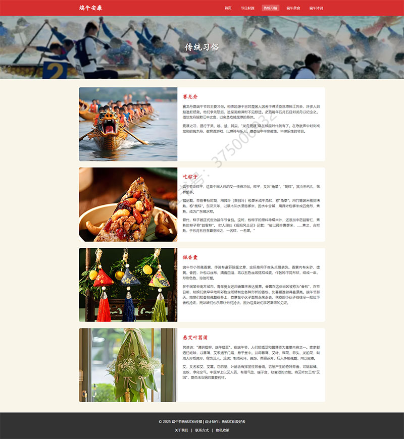 1. 网页简介:此作品为非遗端午节主题网页设计题材,由HTML+CSS+js 制作, web前端期末大作业,大学生网页设计作业源码,这是一个不错的网页制作,排版整齐,代码为简单学生水平, 非常适合初学者学习使用。