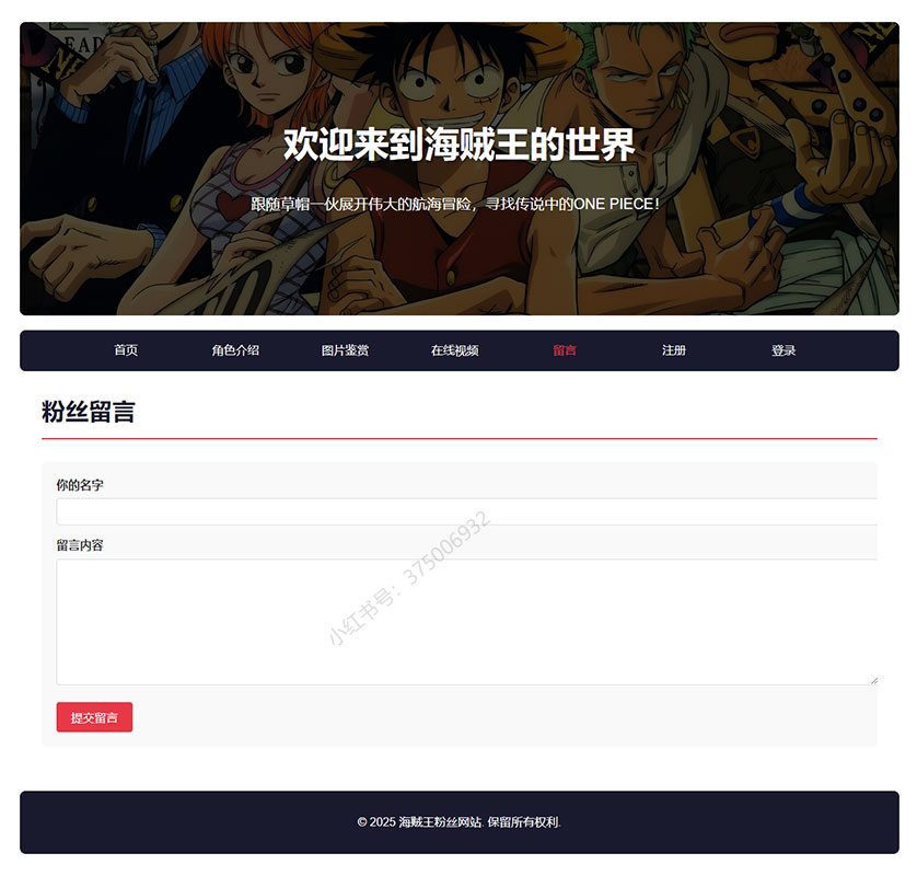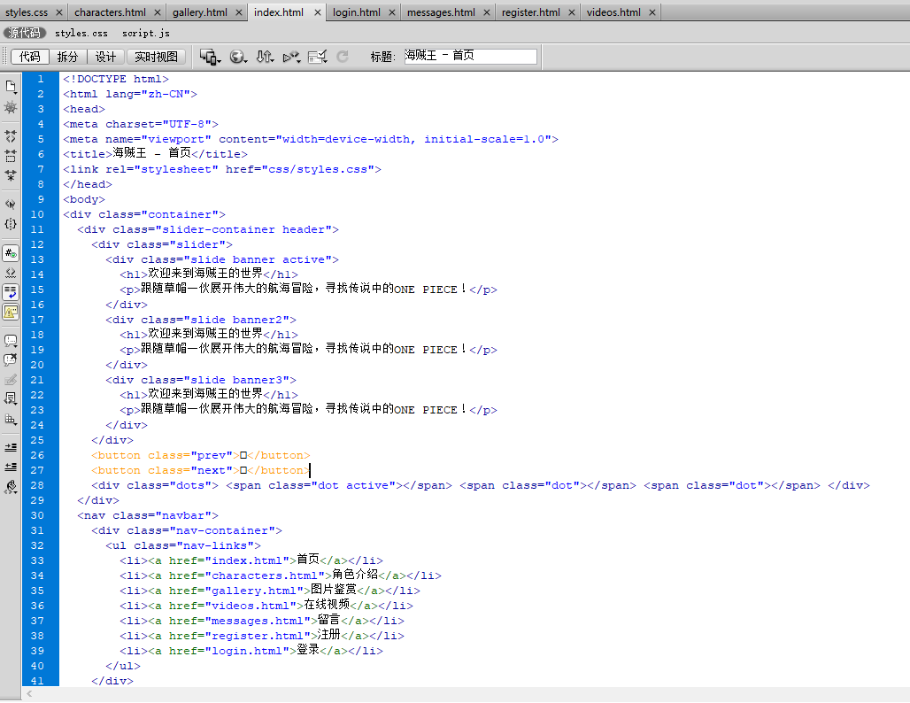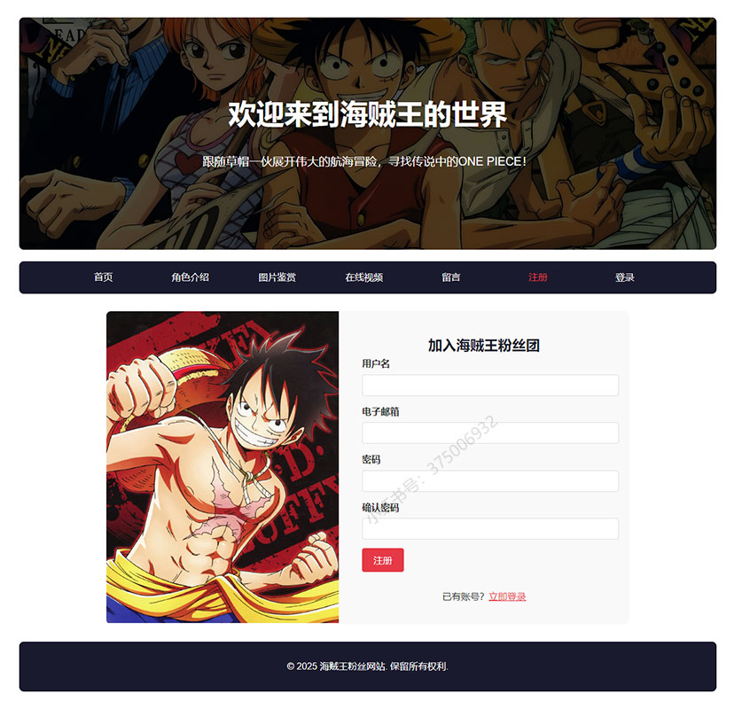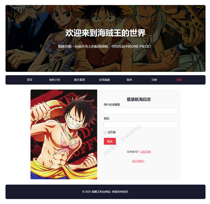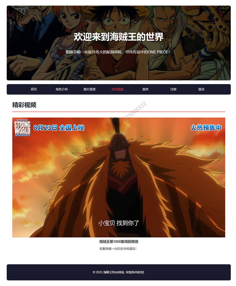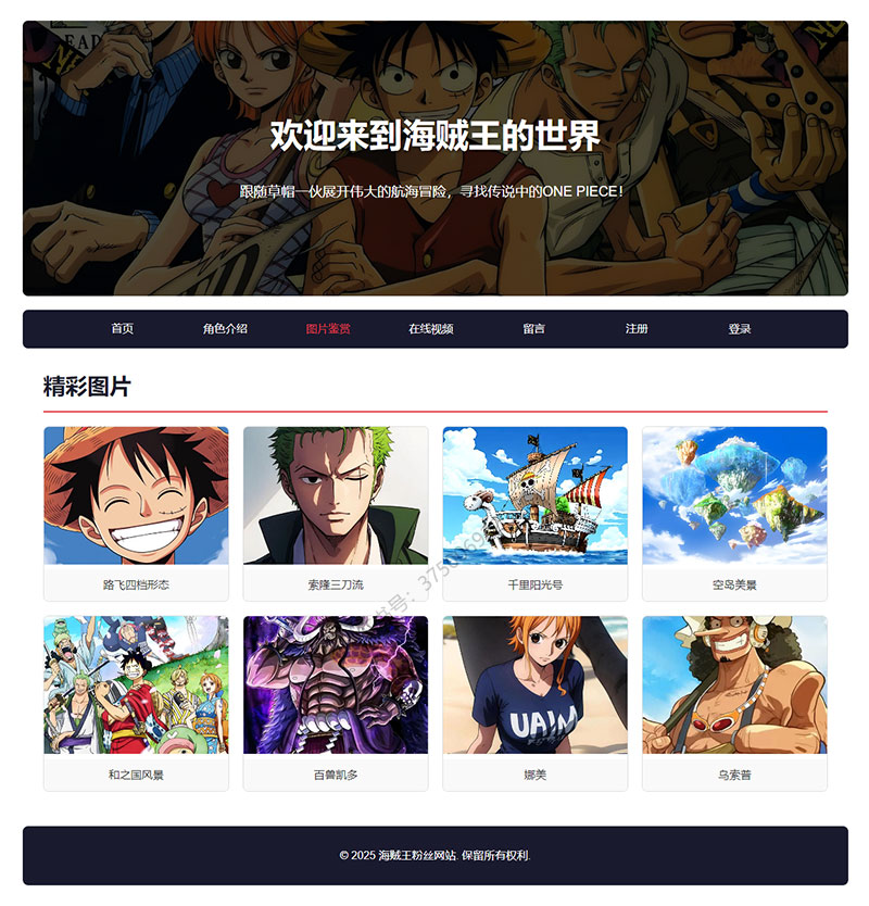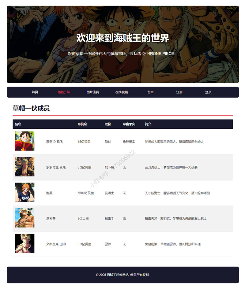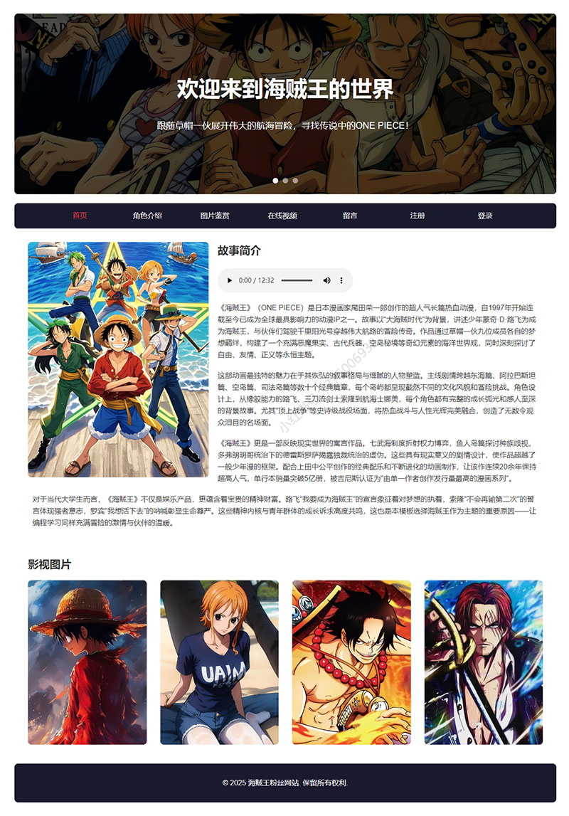 本案例是一套以海贼王为主题的大学生网页设计作业成品。