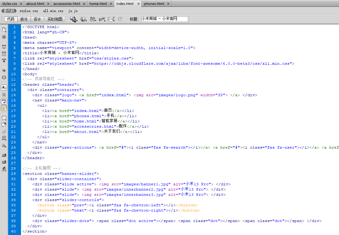3. 涵盖知识:技术方面主要应用了网页知识中的: Div+CSS+JS、鼠标滑过特效、导航栏效果、Banner轮播图、二级页面等.
