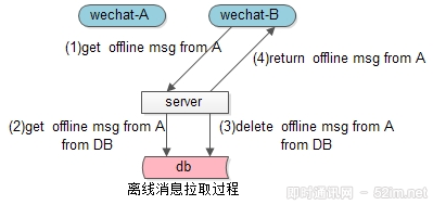 - Stelp 2:服务器从DB(或对应的持久化容器)中拉取离线消息;