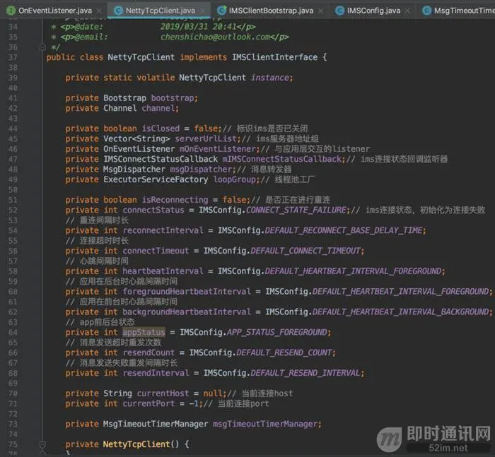 不知不觉,NettyTcpClient中定义了很多变量,为了防止大家不明白变量的定义,还是贴上代码吧: