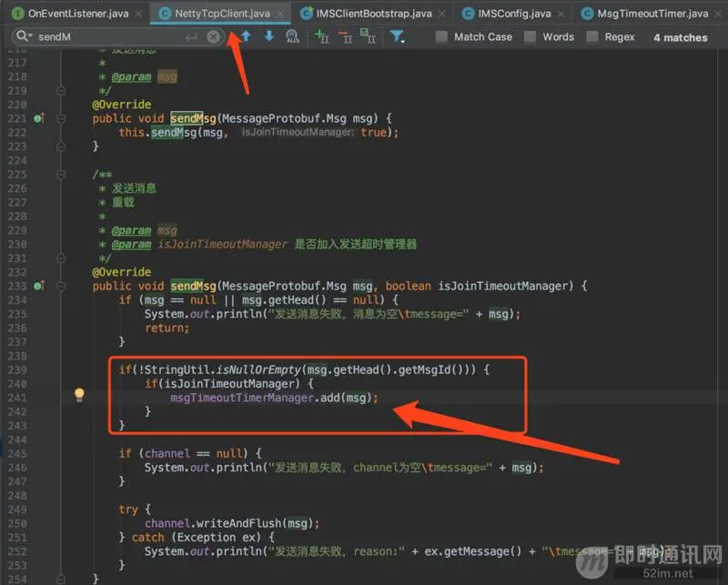 我们仔细看一下channelRead()方法的逻辑,在if判断里,先判断消息类型,如果是服务端返回的消息发送状态报告类型,则判断消息是否发送成功,如果发送成功,从超时管理器中移除,这个超时管理器是干嘛的呢?