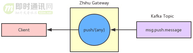情况三:直接从 Kafka Topic 消费并下发,用于纯下发消息的场景,如下图所示。