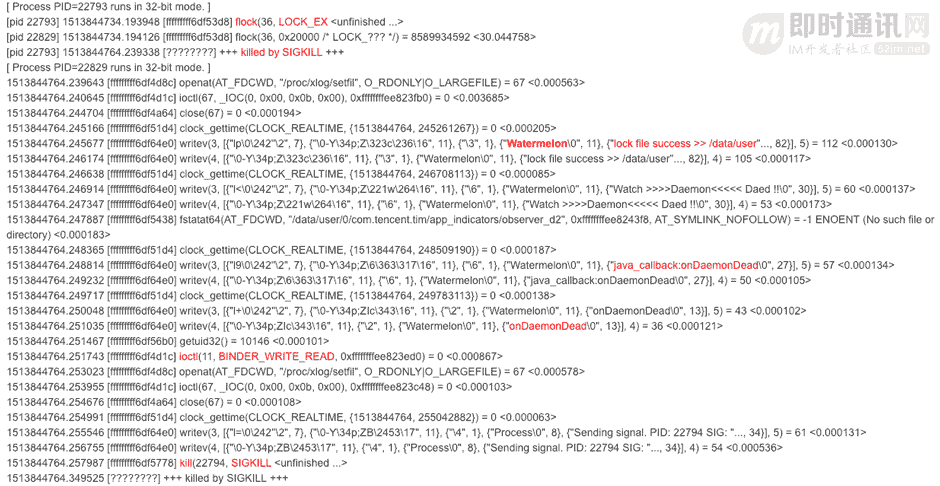 到这里又有出现新的疑问:Daemon进程死后,MSF进程通过flock能监测到该事件,可是app_d进程又是如何得知的呢? app_d得知之后,又为何要再次自杀重启?