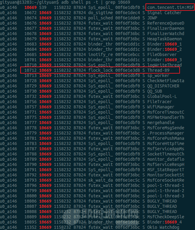 gityuan@13203:~/gityuan$ adb shell ps-t | grep-i flock