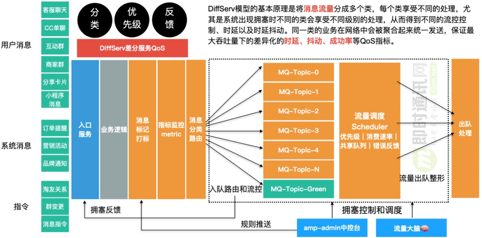 尤其面对流量需要确定性进行分解,分优先级保障不同的消息QoS能力是“高可用架构”永恒不变的主题,就像应用系统的限流,需要分场景进行流控一样。