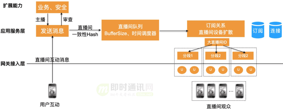 直播间人员规模天然和群聊不一样(单个群<=500人),一个直播间可以突破40万-200万之间设备同时在线。