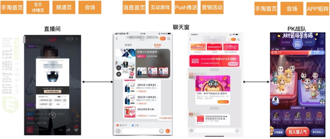 新的形势下,显著特点是时间跨度长、活动周期长以及用户互动玩法更多。从单用户CC分享到群内分享,以及直播间互动消息等,作为电商的IM消息平台,承接着整个互动的场地。
