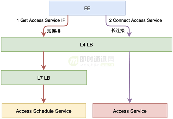 对于长连接的接入层,如果我们需要更加灵活的负载均衡策略或者需要做灰度的话,那我们可以引入一个调度服务。