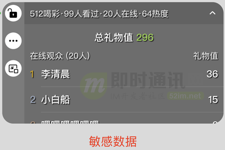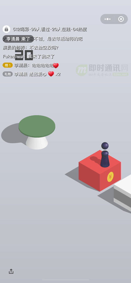 - 3)最关键的一点:产品设计上需要在小游戏上展示一个评论挂件(如下图),便于主播查看直播评论以及进行互动,录屏直播会让观众也看到这个组件,影响观看体验的同时会暴露一些只有主播才能看到的数据。