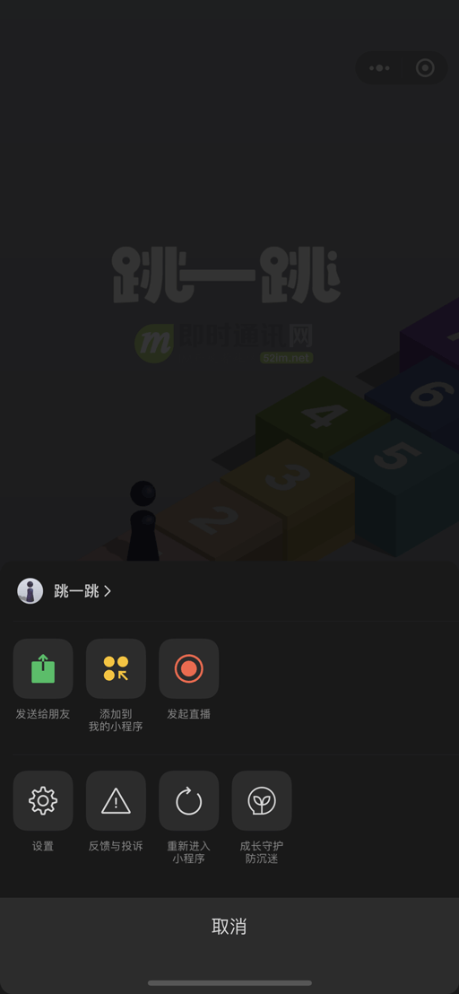近期,微信小游戏支持了视频号一键开播,将微信升级到最新版本,打开腾讯系小游戏(如跳一跳、欢乐斗地主等),在右上角菜单就可以看到发起直播的按钮一键成为游戏主播了(如下图所示)。