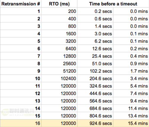 不过 tcp_retries2 设置了 15 次,并不代表 TCP 超时重传了 15 次才会通知应用程序终止该 TCP 连接,内核还会基于“最大超时时间”来判定。