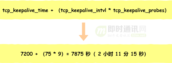 也就是说在 Linux 系统中,最少需要经过 2 小时 11 分 15 秒才可以发现一个“死亡”连接。