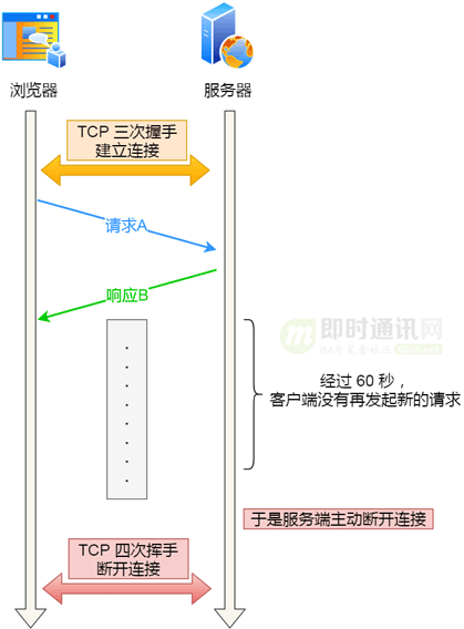 比如:一般Web 服务器都会提供 keepalive_timeout 参数,用来指定 HTTP 长连接的超时时间。如果设置了 HTTP 长连接的超时时间是 60 秒,Web 服务软件就会启动一个定时器,如果客户端在完后一个 HTTP 请求后,在 60 秒内都没有再发起新的请求,定时器的时间一到,就会触发回调函数来释放该连接。