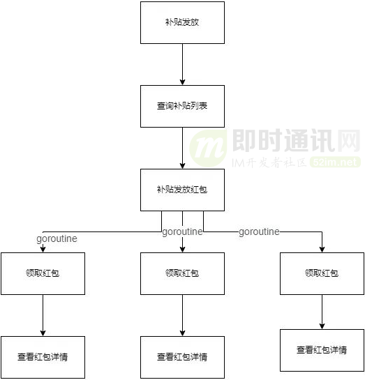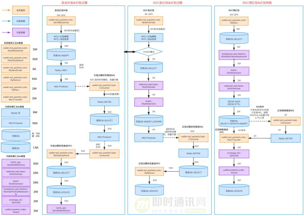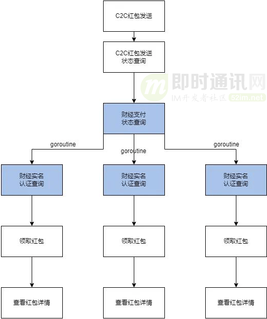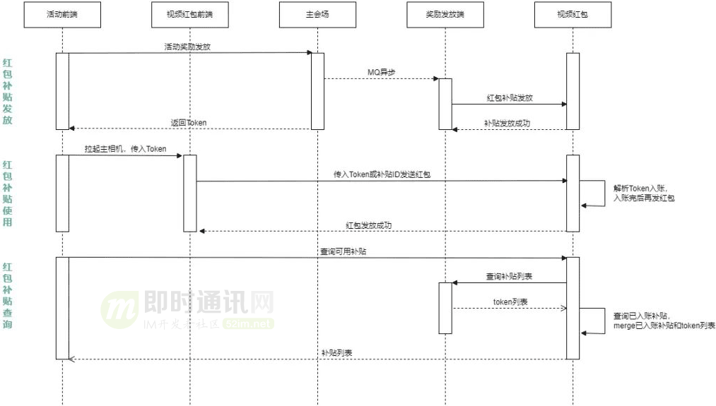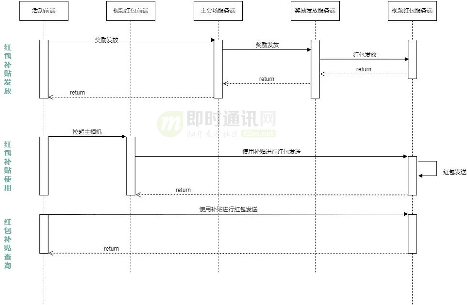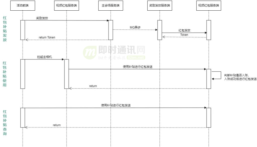 - 3)红包查询服务:主要承载红包查询功能,包括红包详情、红包发送状态、红包领取状态、红包领取详情、红包补贴信息;