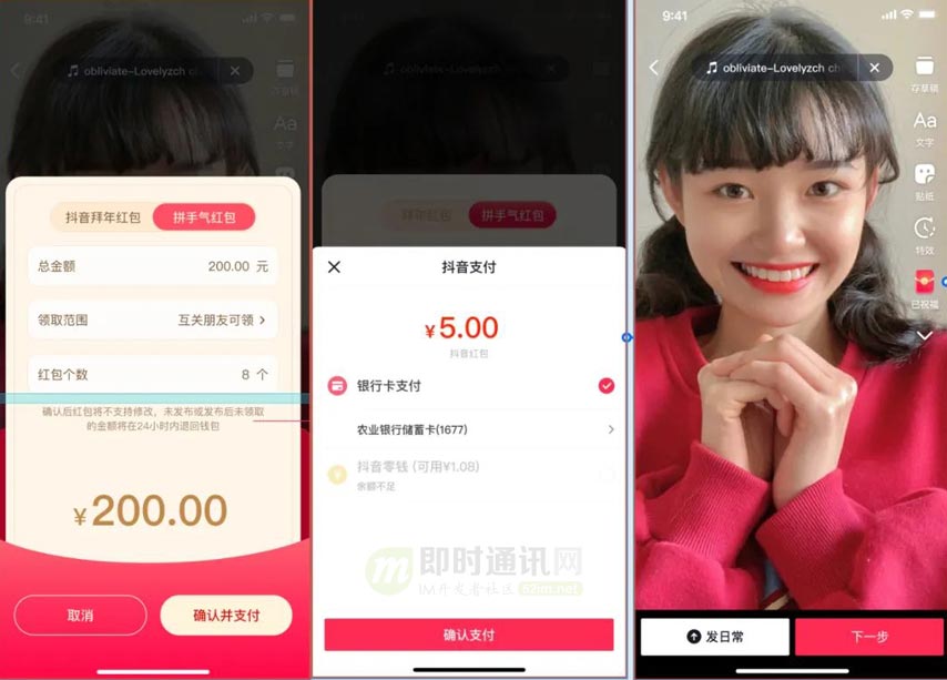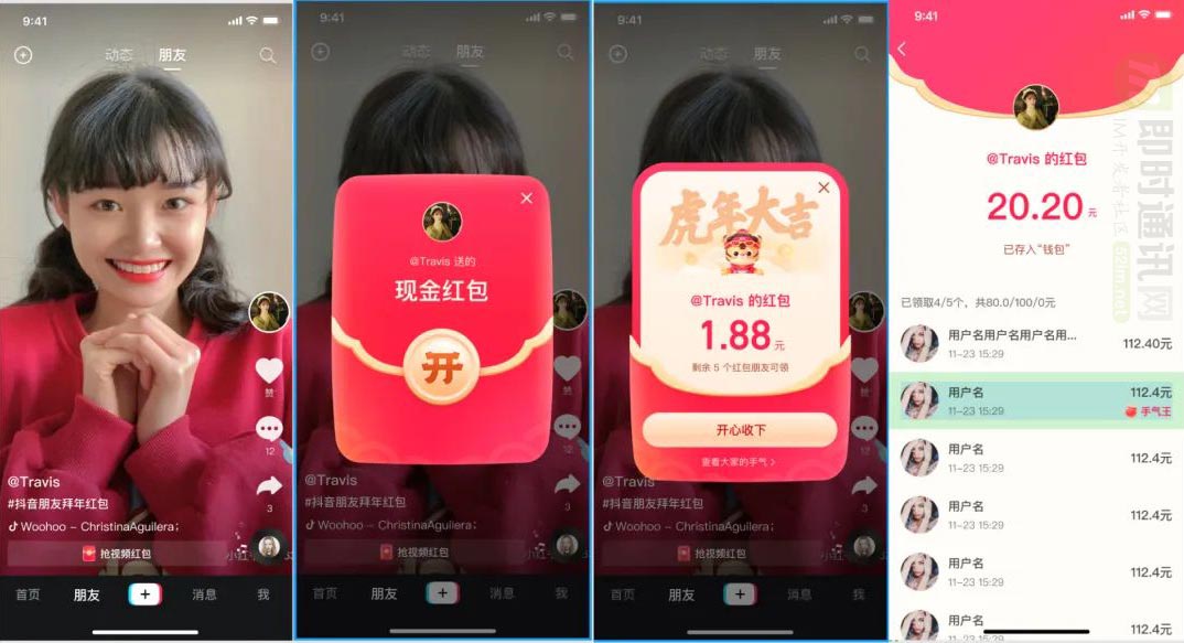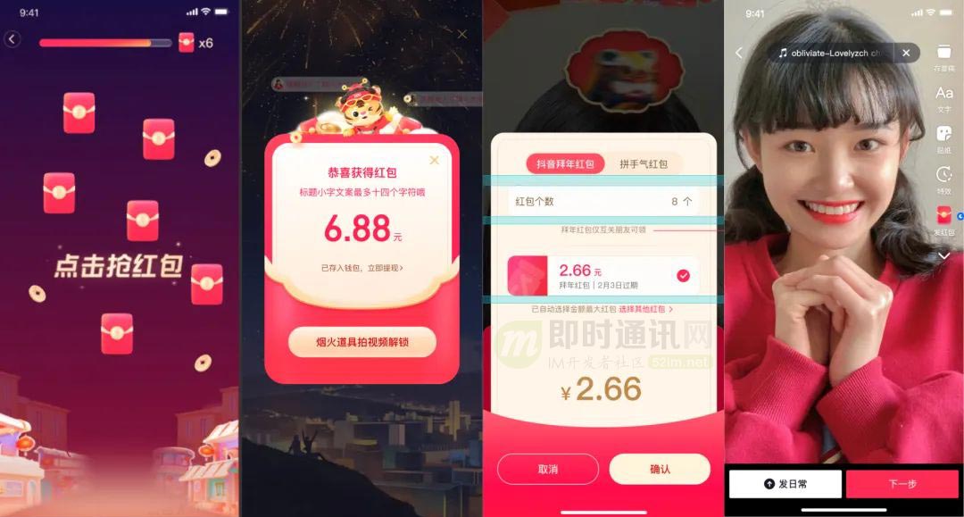 对于中国人一年一度最重的节日——春节来说,红包是必不可少的节日特定社交元素,而抖音自然不会被错过。在2022年的春节活动期间,抖音将视频和春节红包相结合,用户可以通过拍视频发红包的方式来给粉丝和好友送祝福。