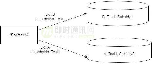 这里:我们就补贴的发放来简单介绍下,在业务系统的设计中,我们是按照 uid 分片的方式来建立业务的数据库表,这就导致补贴的分片键是 uid,虽然我们也设置了红包的补贴单号作为唯一键。