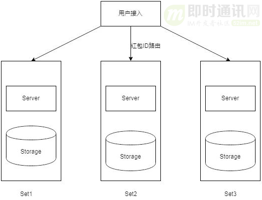 即将服务 Server 和对应的存储划分为一个单独的 Set,每个 Set 只处理对应划分单元内的流量,同时多个单元之间实现流量拆分和故障隔离,以及 Set 之间数据备份。