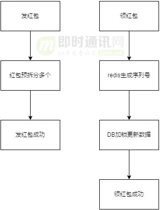 - 4)读写分离,将红包的核心操作和红包的查询分成两个服务。