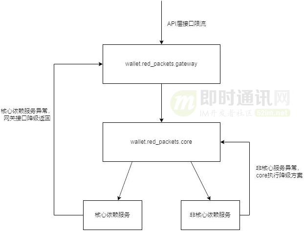 除核心依赖外,红包系统还有一些非核心的下游依赖,对于这些依赖,如果服务出现异常,我们可以降低用户部分体验的方式来保证服务的可用。