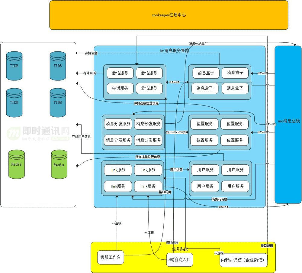 im第一版设计的初衷是公司需要一款im消息中间件用于支撑客服咨询业务。
