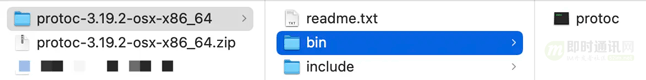 可以看到 bin 目录下有个 protoc 的可执行文件。