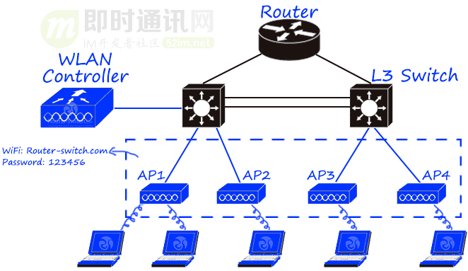 2)在瘦 AP 方案中,无线 AP 仅具有无线信号传输功能,所有命令调试都集中在后台的 AC / 无线控制器上。