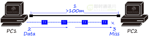 如果终端之间的距离太远,一旦超过网线物理传输距离的上限,数据就会开始丢失。