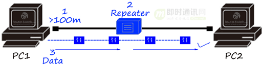 中继器通常只有两个接口,这意味着如果网络中有三个以上的终端主机,则无法实现多个主机之间的直接数据通信。