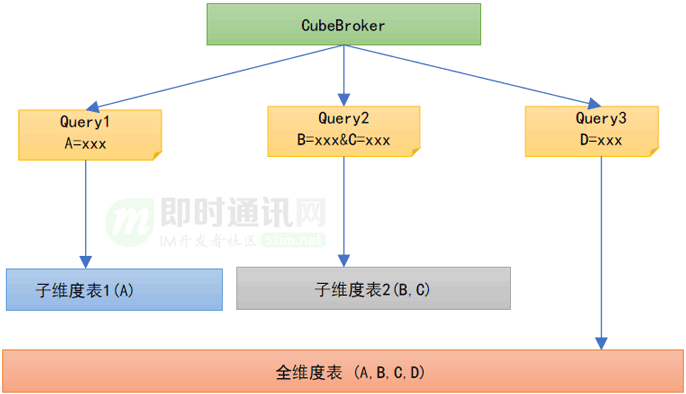 - 2) 查询层支持按照用户请求中的查询维度,匹配最小的子维度表。