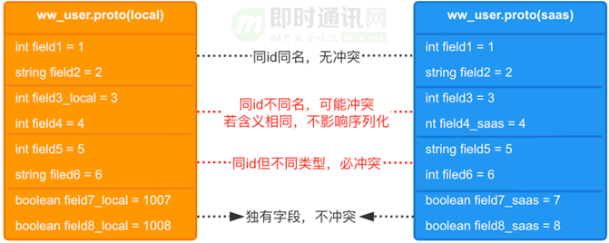 为了实现两套通用底层的PB统一,最大的问题是如何兼容两份PB的冲突字段。