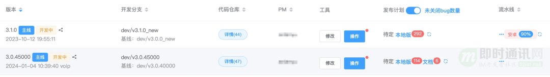 为了让各个角色的成员都能清晰了解和管理当前正在发布的分支和迭代,我们开发了专门的分支管理页面,自动化拉取、合并不同的迭代分支,以及管理迭代的生命周期。