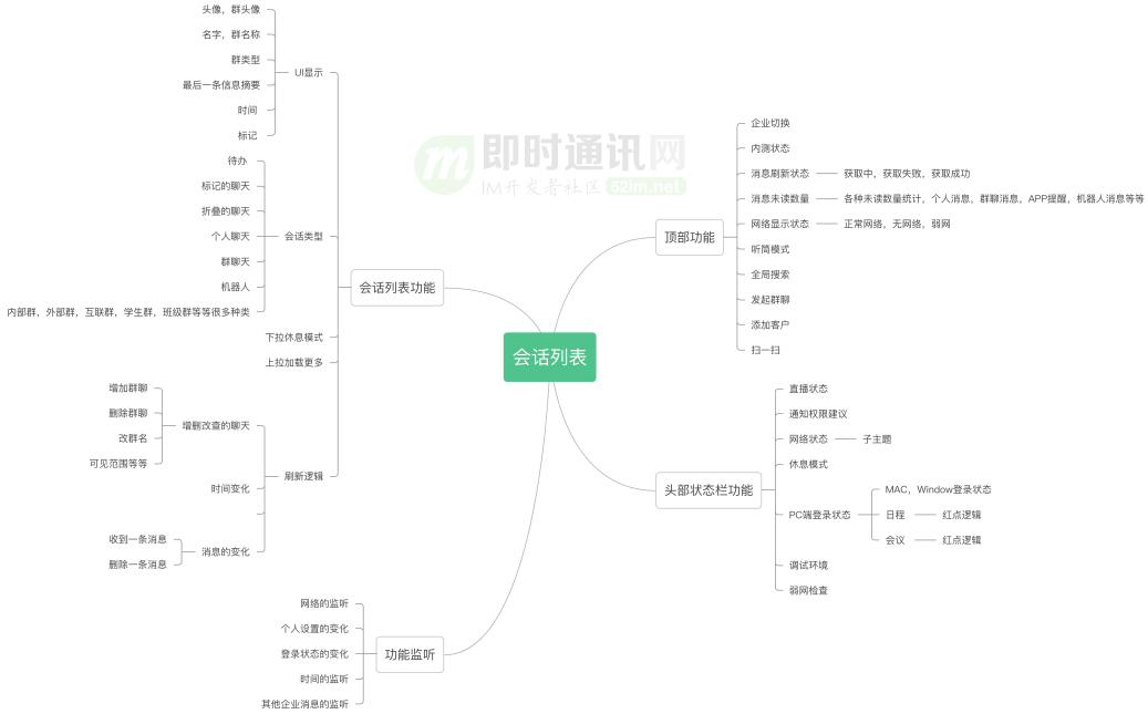 下图是我们对会话列表涉及的业务功能进行的梳理: