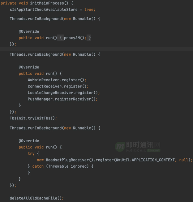 下图所示是一部分重构前的启动任务逻辑,各种业务的启动任务都写在 initMainProcess()中。