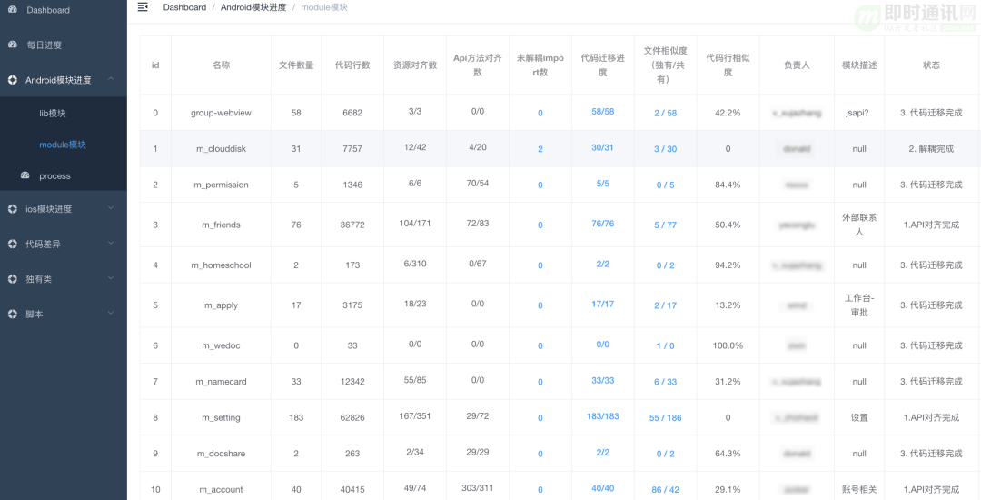 然后我们做了一个网站自动监控每个模块的解耦进度: