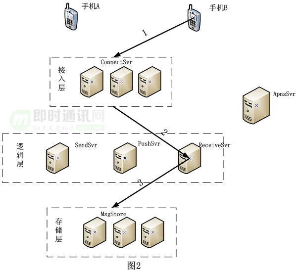 该架构实现了即时通讯软件对消息收发所需的两个基本要求: