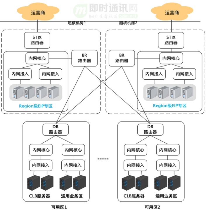 此外:EIP和CLB部署在每个机房,因此在每个机房都需要建立EIP出口。但是各个机房的公网出口之间缺无法相互容灾。