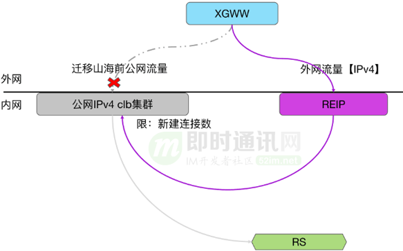 首先:用REIP将公网流量先引进来,再将这个流量通过隧道报文的形式转发给原有的公网CLB集群,这样公网CLB不需要原有外网接入的能力,不需要再跟外网打交道,可以演变成只在机房内部的集群;同时因为公网CLB的流量都会经过REIP,REIP自然也就是公网CLB的流量入口。从而达到我们最初收敛公网入口的目的。这样的架构升级,可实现用户无感知。架构升级切换过程中,用户在访问公网CLB,不会出现卡顿或者重连的现象。