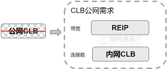 公网CLB最早是有公网接入能力的。引入到Region EIP之后,当初设想是公网CLB不再演进,尽量让存量用户迁移到另外一种形式,上层是Region EIP,下层是内网CLB。用户先买一个内网CLB,如果需要对公网提供服务就再买一个弹性EIP,把EIP跟内网CLB绑定在一起,提供CLB公网的能力,替代原有的公网CLB,这是最早公网CLB的替代方案。