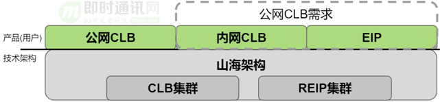 为了应对这种小带宽低成本的诉求,我们将CLB+REIP的模型进一步抽象,引入山海架构:我们只建设CLB和REIP两类集群。通过这两类集群上的不同实例组合,满足多个产品形态的要求。从而实现产品形态和底层物理网络集群类型解耦。