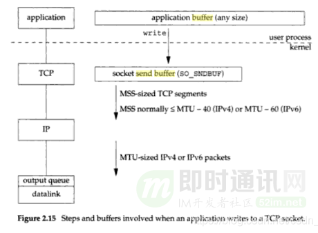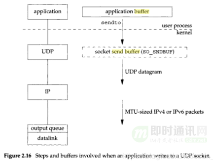 那这是否意味着 UDP 是有发送缓冲区的吗?我们再看一下《UNIX Network Programming》书中所述,这本书的作者权威性我就不多说了吧,在国内高校此书都是当做教材使用的。(PS:经典书籍《UNIX网络编程》最全下载(卷1+卷2、中文版+英文版)[附件下载])