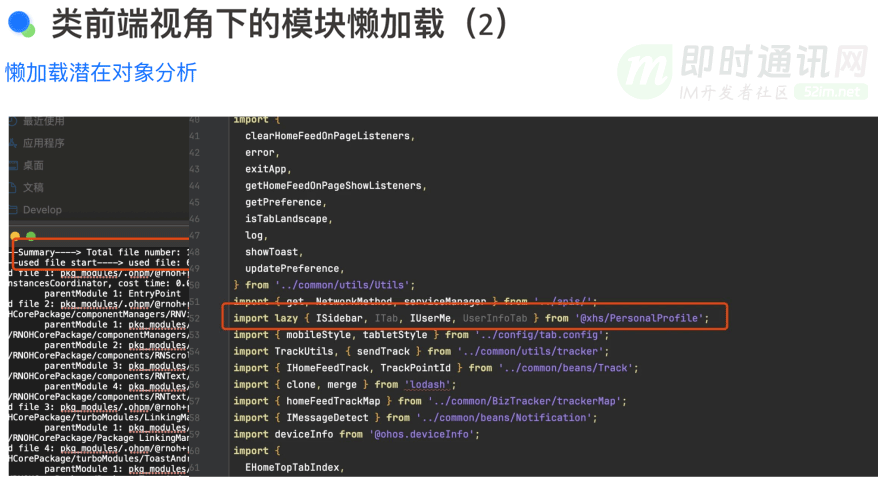 2)其次:我们正在考虑代码延迟加载的 lazy 机制。华为内部可能将其作为通用的解决方案,但在实施过程中我们发现了许多问题,例如全 lazy 加载可能会影响第三方 SDK,如支付宝等,因为它们可能进行了额外的二进制优化,导致加载失败或无法响应。因此,我们期望通过代码延迟加载来实现持续治理,但目前它可能还不适合全场景的 lazy import。