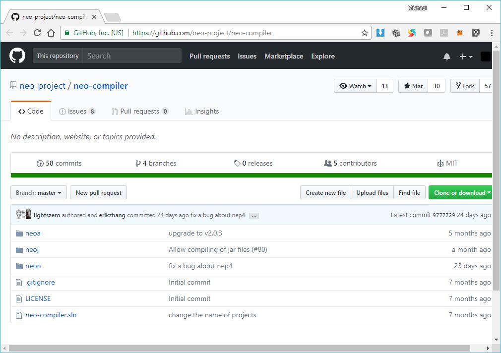 1.访问Neon NEO转译器的GitHub项目: https://github.com/neo-project/neo-compiler.
