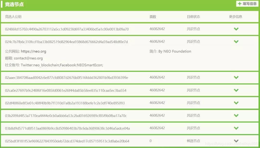 所有节点候选人或者组织应向社区提供以下信息,信息可以发布于NEO官网的投票检测页面里,并发布在组织官网上。(以下列表仅供参考)