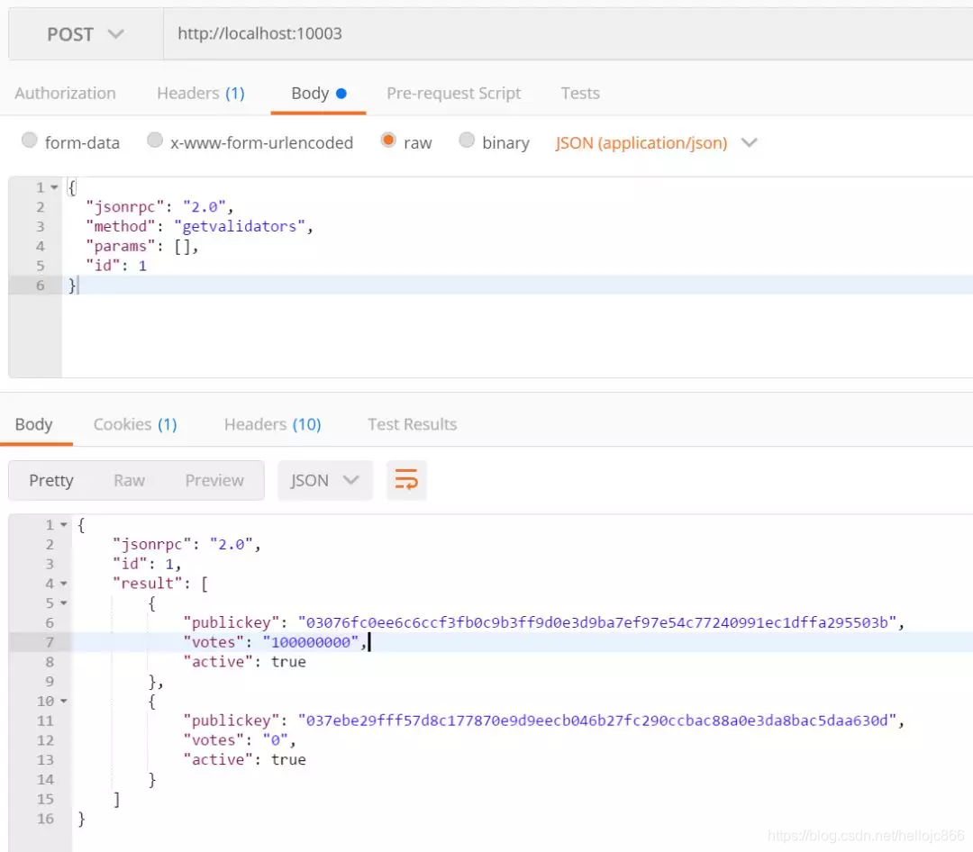 可以查看到返回的响应正文中显示出该公钥与对应的的票数。