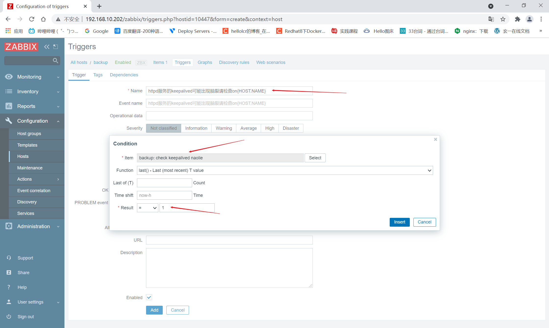 对脑裂的监控应在备用服务器上进行,通过添加zabbix自定义监控进行。