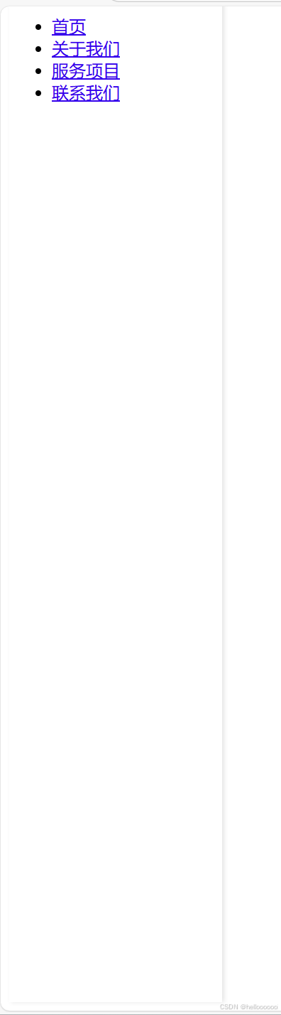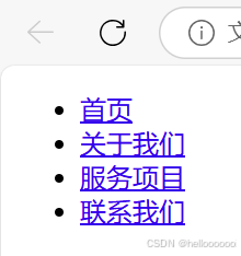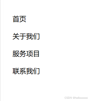 <nav> <a href="index.html">首页</a> <a href="about.html">关于我们</a> <a href="services.html">服务项目</a> <a href="contact.html">联系我们</a> </nav>