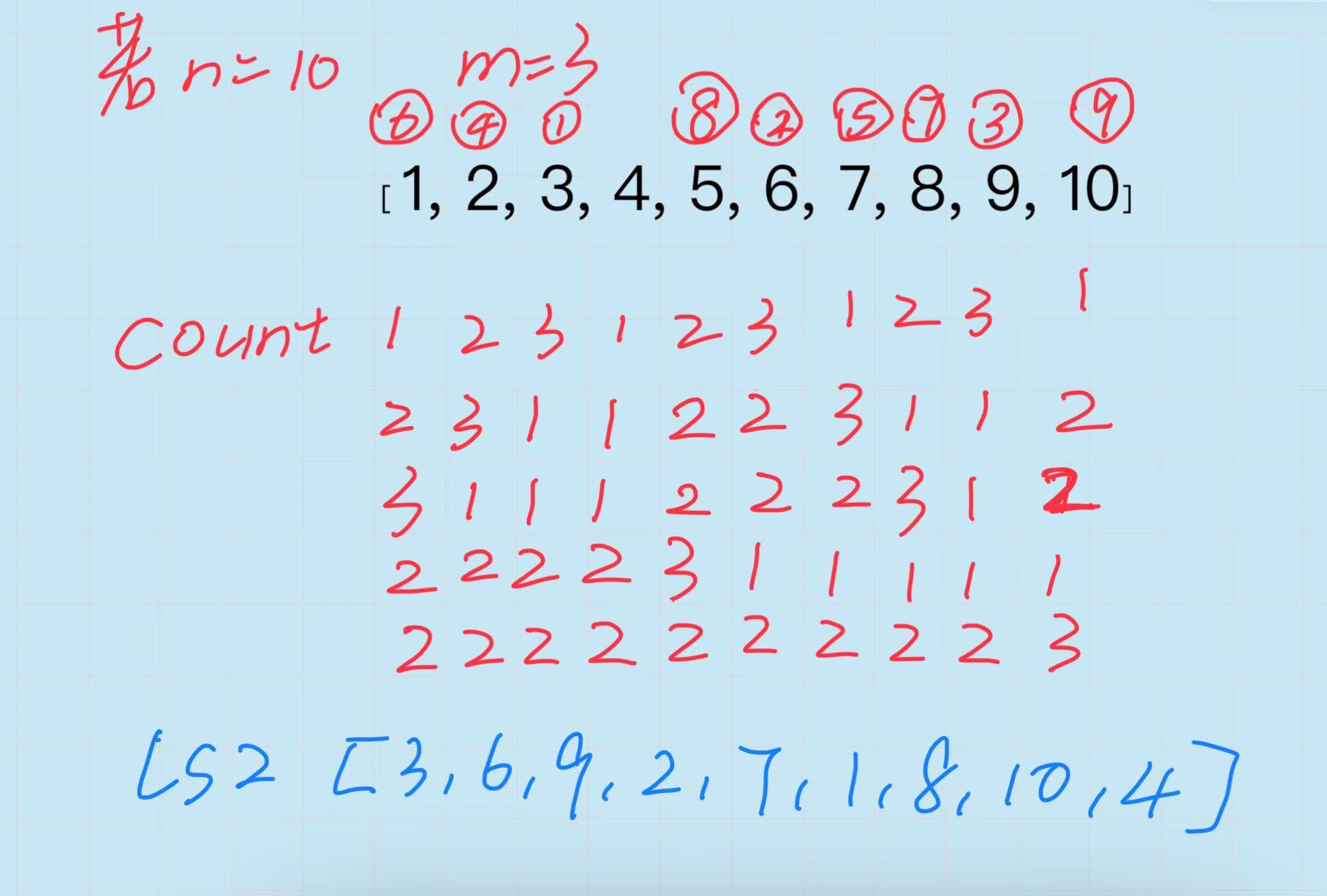 输出一行 n 个整数,按顺序输出每个出圈人的编号。