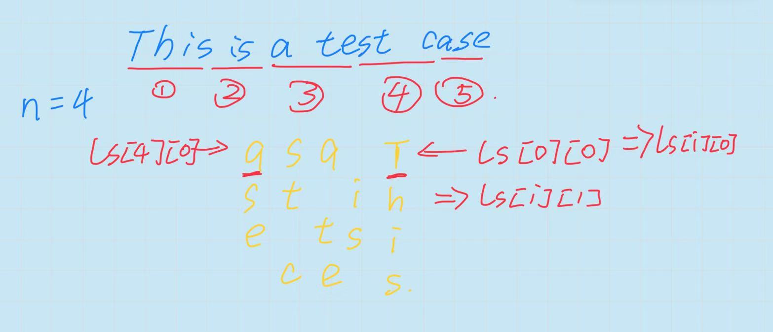 输入在第一行给出一个正整数N(<100),是每一列的字符数。第二行给出一个长度不超过1000的非空字符串,以回车结束。