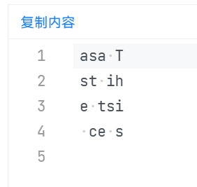 从最后一组开始,逆序遍历分组列表,输出当前列的字符,不换行,每列输出完毕后换行 print()。